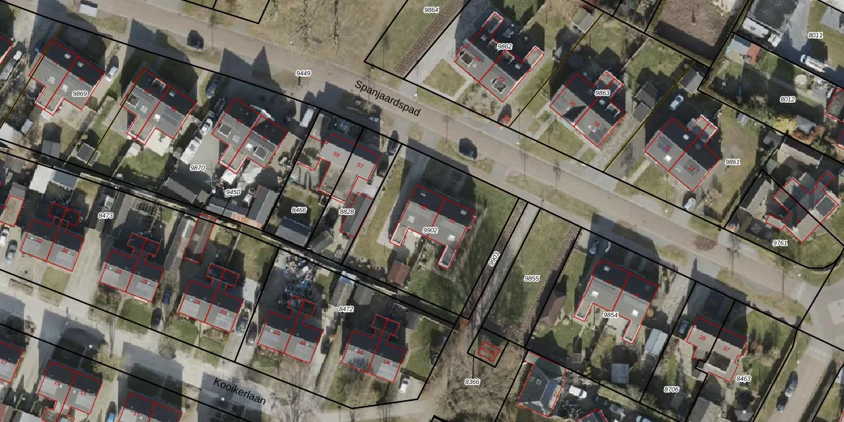 Het perceel waarop Spanjaardspad 55 staat heeft een oppervlakte van 968 m². Dit is een groot perceel. De perceeloppervlakte wordt geregistreerd door het Kadaster. Gedetailleerde informatie over de maten van dit perceel kunt u vinden in het rapport Kadastrale kaart met maatvoering van Spanjaardspad 55.