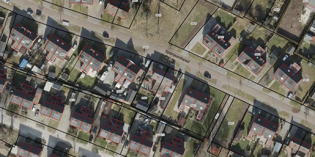 Het perceel waarop Spanjaardspad 59 staat heeft een oppervlakte van 354 m². Dit is een groot perceel. De perceeloppervlakte wordt geregistreerd door het Kadaster. Gedetailleerde informatie over de maten van dit perceel kunt u vinden in het rapport Kadastrale kaart met maatvoering van Spanjaardspad 59.