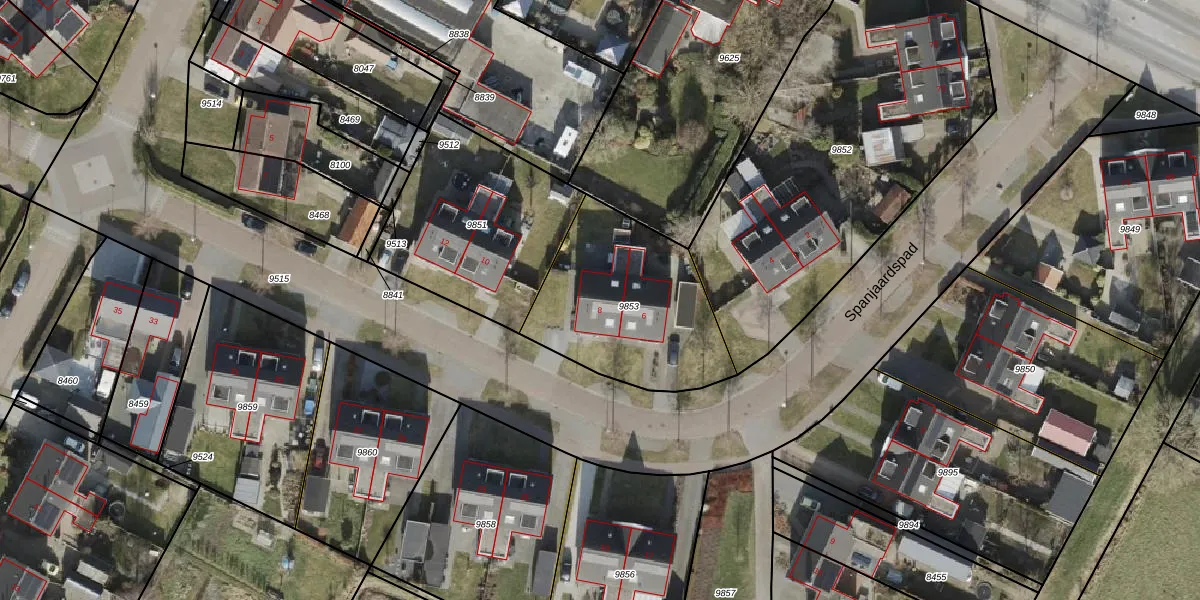 Spanjaardspad 8 is gelegen op kadastraal perceel SNB00A9853. Deze kadastrale aanduiding is uniek en wordt gebruikt door het Kadaster om eigendomsrechten en andere zakelijke rechten vast te leggen. Het perceel maakt onderdeel uit van de kadastrale gemeente Schoonebeek.