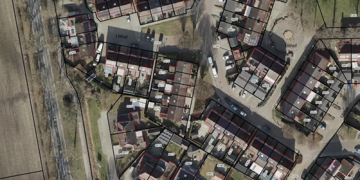 Het perceel waarop Uithof 112 staat heeft een oppervlakte van 150 m². Dit is een middelgroot perceel. De perceeloppervlakte wordt geregistreerd door het Kadaster. Gedetailleerde informatie over de maten van dit perceel kunt u vinden in het rapport Kadastrale kaart met maatvoering van Uithof 112.