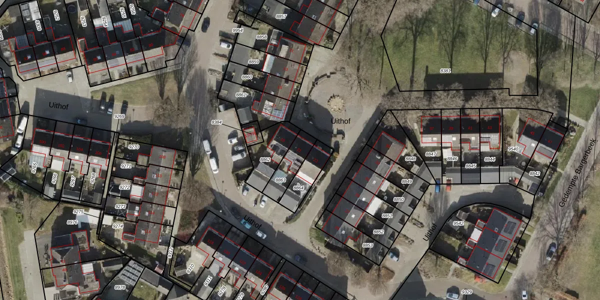 Gebruik de zoekbalk of klik op een perceel voor informatie over de adressen binnen dit perceel.