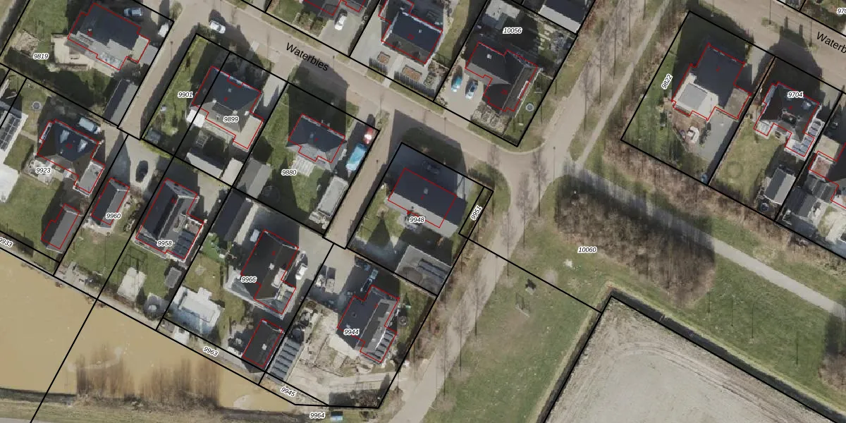 Het perceel waarop Waterbies 1 staat heeft een oppervlakte van 656 m². Dit is een groot perceel. De perceeloppervlakte wordt geregistreerd door het Kadaster. Gedetailleerde informatie over de maten van dit perceel kunt u vinden in het rapport Kadastrale kaart met maatvoering van Waterbies 1.