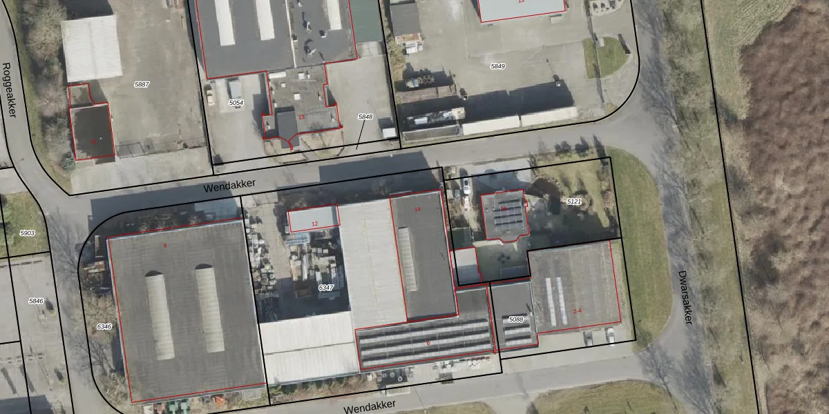 Het perceel waarop Wendakker 14 staat heeft een oppervlakte van 2681 m². Dit is een zeer groot perceel. De perceeloppervlakte wordt geregistreerd door het Kadaster. Gedetailleerde informatie over de maten van dit perceel kunt u vinden in het rapport Kadastrale kaart met maatvoering van Wendakker 14.