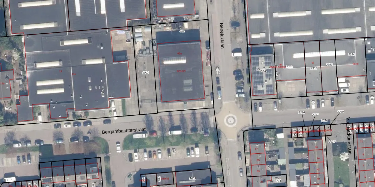 Het perceel waarop Beneluxlaan 62-c staat heeft een oppervlakte van 1420 m². Dit is een zeer groot perceel. De perceeloppervlakte wordt geregistreerd door het Kadaster. Gedetailleerde informatie over de maten van dit perceel kunt u vinden in het rapport Kadastrale kaart met maatvoering van Beneluxlaan 62-c.