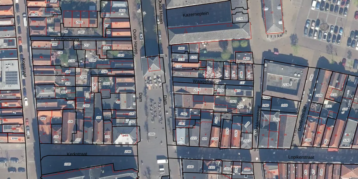 Het perceel waarop Dam 7 staat heeft een oppervlakte van 155 m². Dit is een middelgroot perceel. De perceeloppervlakte wordt geregistreerd door het Kadaster. Gedetailleerde informatie over de maten van dit perceel kunt u vinden in het rapport Kadastrale kaart met maatvoering van Dam 7.