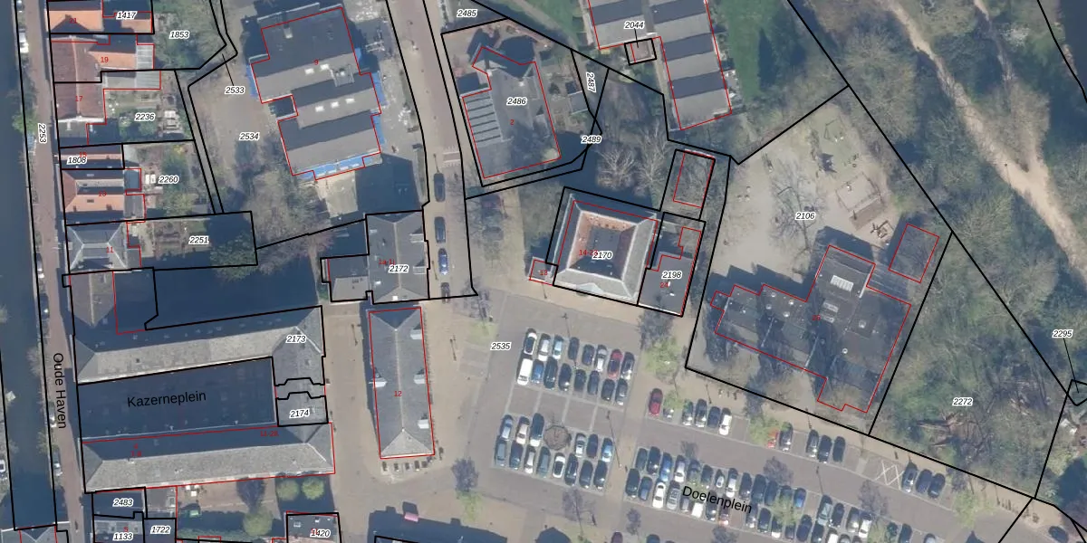 Het perceel waarop Doelenplein 13 staat heeft een oppervlakte van 7715 m². Dit is een zeer groot perceel. De perceeloppervlakte wordt geregistreerd door het Kadaster. Gedetailleerde informatie over de maten van dit perceel kunt u vinden in het rapport Kadastrale kaart met maatvoering van Doelenplein 13.