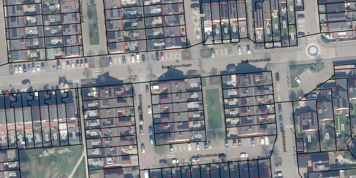 Gebruik de zoekbalk of klik op een perceel voor informatie over de adressen binnen dit perceel.