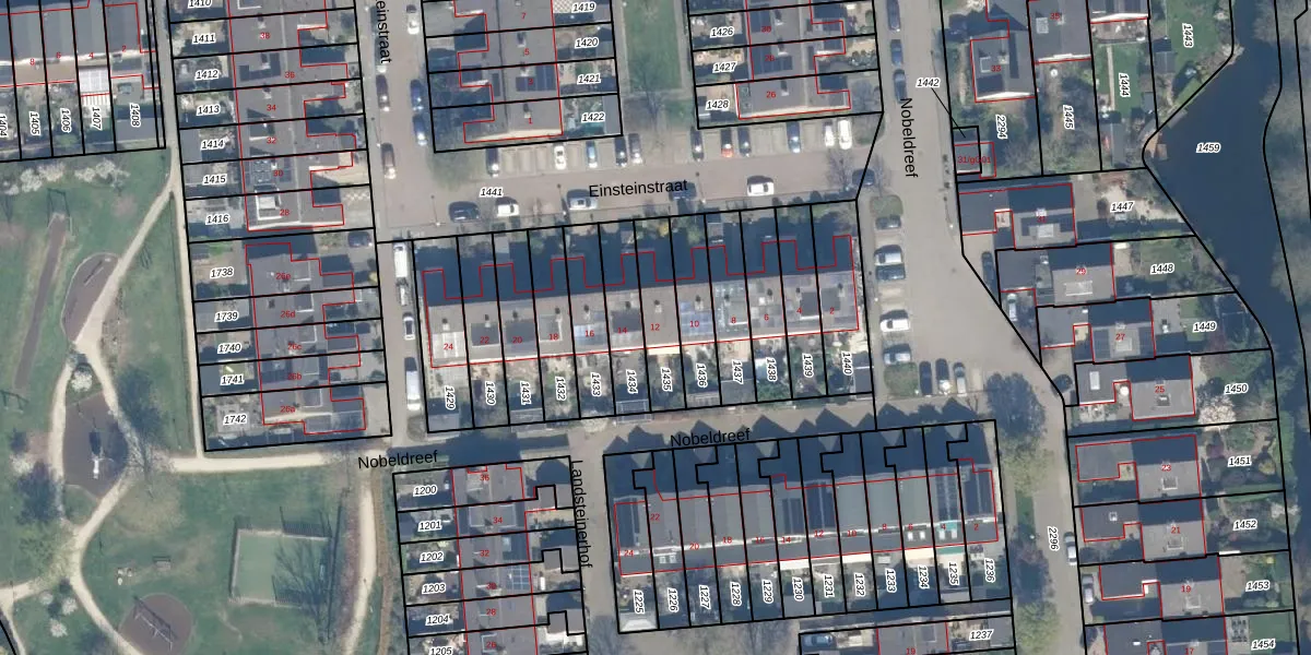 Het perceel waarop Einsteinstraat 12 staat heeft een oppervlakte van 158 m². Dit is een middelgroot perceel. De perceeloppervlakte wordt geregistreerd door het Kadaster. Gedetailleerde informatie over de maten van dit perceel kunt u vinden in het rapport Kadastrale kaart met maatvoering van Einsteinstraat 12.