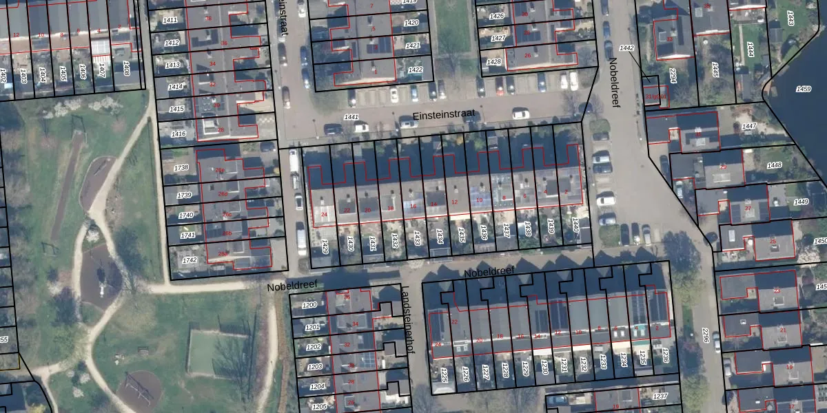 Het perceel waarop Einsteinstraat 16 staat heeft een oppervlakte van 158 m². Dit is een middelgroot perceel. De perceeloppervlakte wordt geregistreerd door het Kadaster. Gedetailleerde informatie over de maten van dit perceel kunt u vinden in het rapport Kadastrale kaart met maatvoering van Einsteinstraat 16.