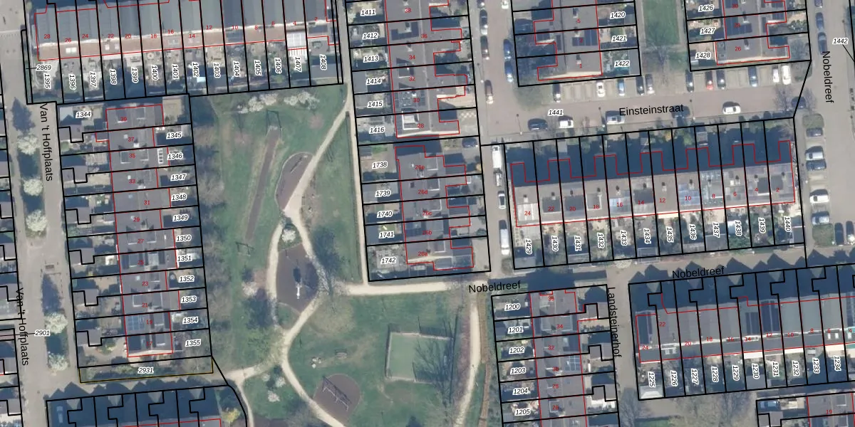 Het perceel waarop Einsteinstraat 26-c staat heeft een oppervlakte van 137 m². Dit is een middelgroot perceel. De perceeloppervlakte wordt geregistreerd door het Kadaster. Gedetailleerde informatie over de maten van dit perceel kunt u vinden in het rapport Kadastrale kaart met maatvoering van Einsteinstraat 26-c.