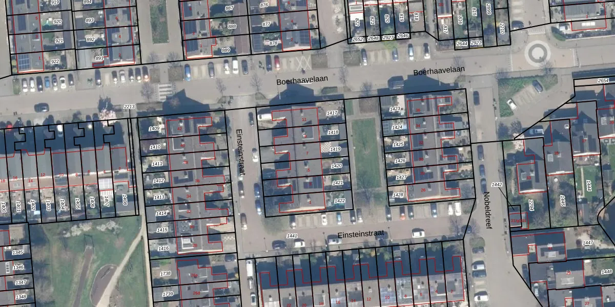 Gebruik de zoekbalk of klik op een perceel voor informatie over de adressen binnen dit perceel.