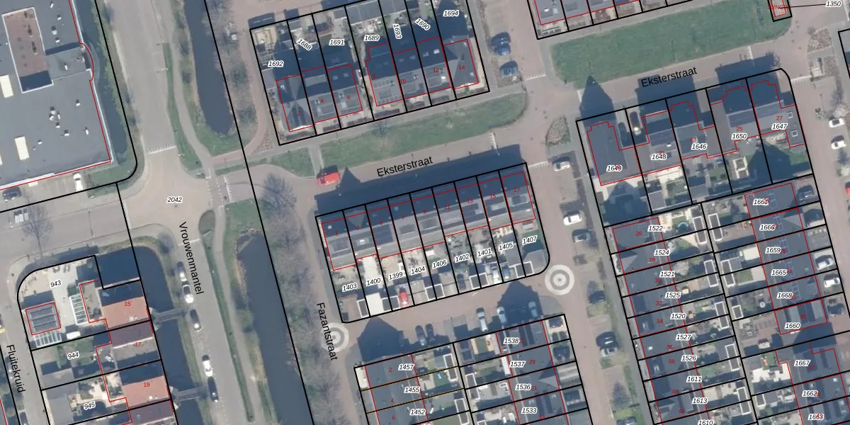 Het perceel waarop Eksterstraat 9 staat heeft een oppervlakte van 140 m². Dit is een middelgroot perceel. De perceeloppervlakte wordt geregistreerd door het Kadaster. Gedetailleerde informatie over de maten van dit perceel kunt u vinden in het rapport Kadastrale kaart met maatvoering van Eksterstraat 9.