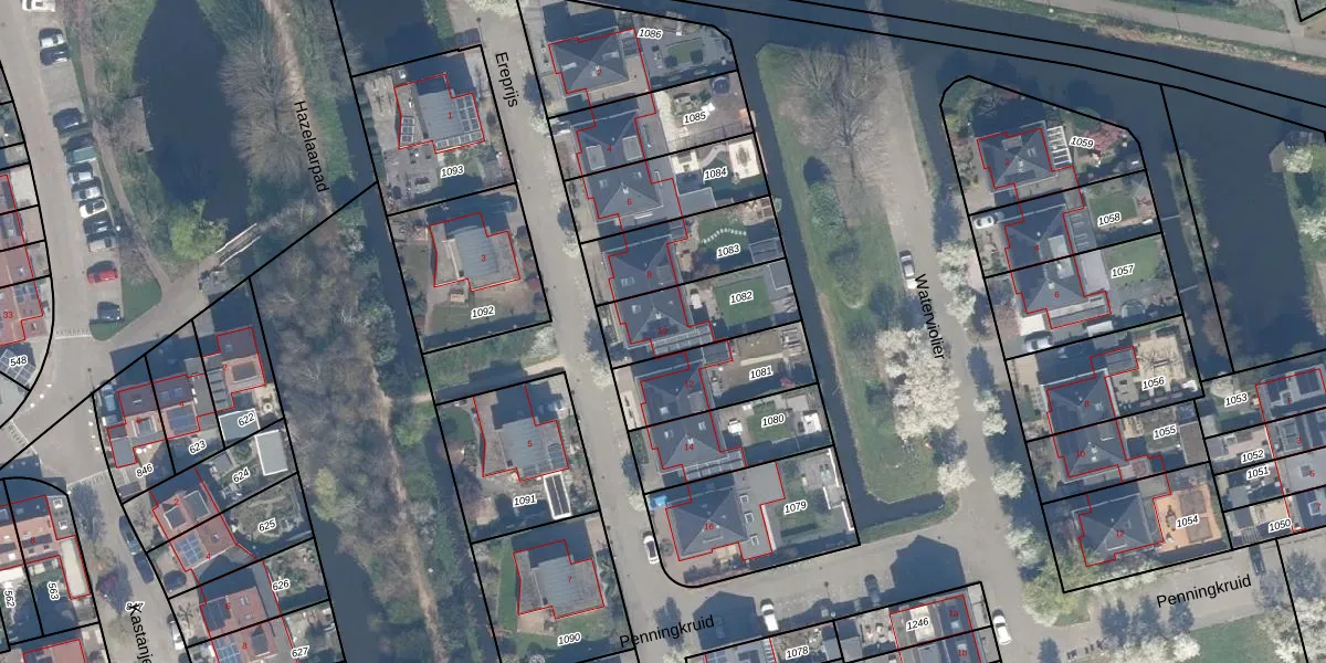 Gebruik de zoekbalk of klik op een perceel voor informatie over de adressen binnen dit perceel.