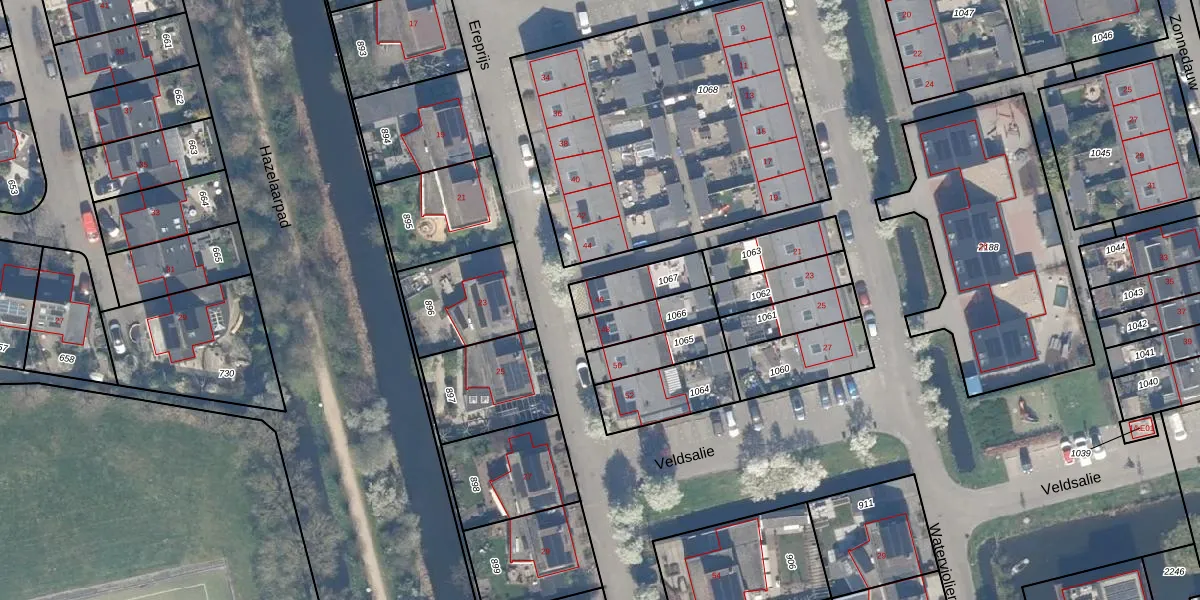 Gebruik de zoekbalk of klik op een perceel voor informatie over de adressen binnen dit perceel.