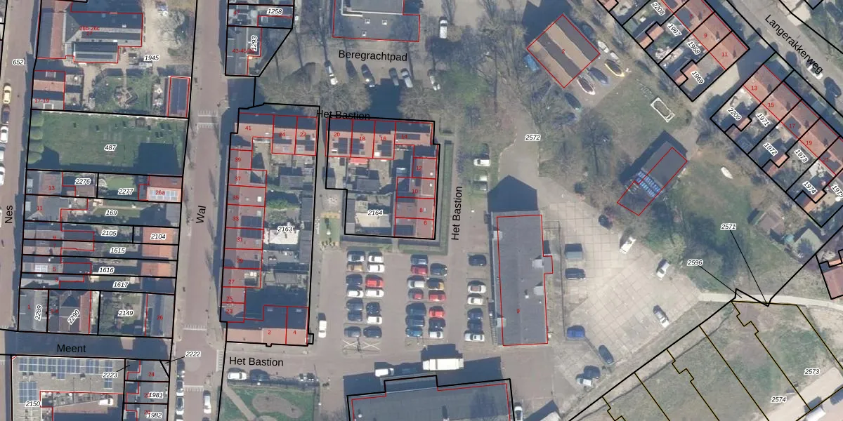 Het perceel waarop Het Bastion 8 staat heeft een oppervlakte van 673 m². Dit is een groot perceel. De perceeloppervlakte wordt geregistreerd door het Kadaster. Gedetailleerde informatie over de maten van dit perceel kunt u vinden in het rapport Kadastrale kaart met maatvoering van Het Bastion 8.
