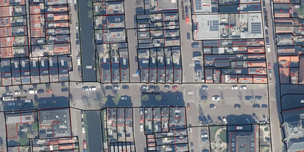 Gebruik de zoekbalk of klik op een perceel voor informatie over de adressen binnen dit perceel.