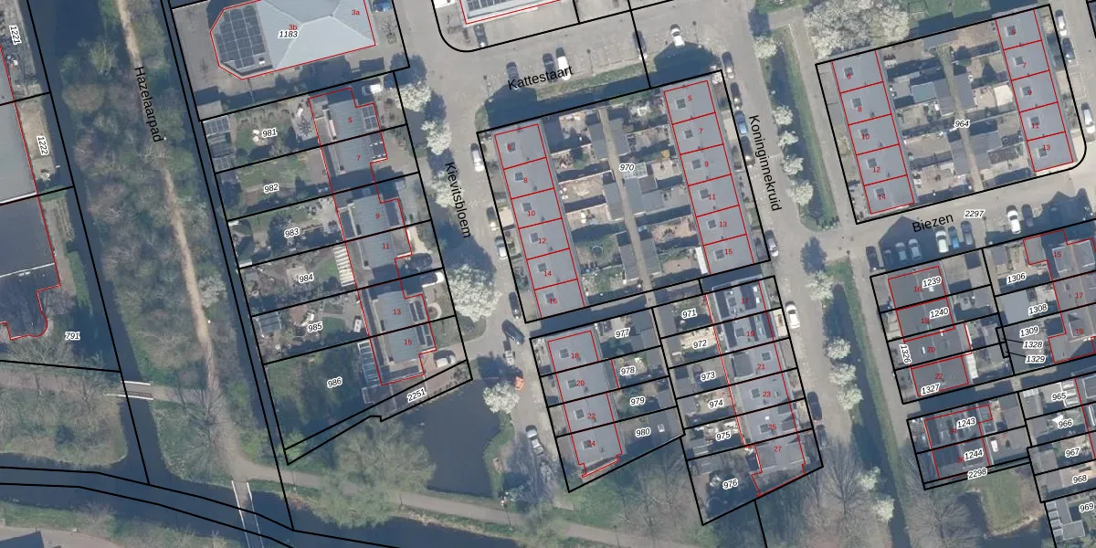 Kievitsbloem 14 is gelegen op kadastraal perceel SHV00E970. Deze kadastrale aanduiding is uniek en wordt gebruikt door het Kadaster om eigendomsrechten en andere zakelijke rechten vast te leggen. Het perceel maakt onderdeel uit van de kadastrale gemeente Schoonhoven.