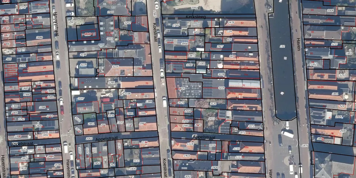 Het perceel waarop Koestraat 51 staat heeft een oppervlakte van 214 m². Dit is een middelgroot perceel. De perceeloppervlakte wordt geregistreerd door het Kadaster. Gedetailleerde informatie over de maten van dit perceel kunt u vinden in het rapport Kadastrale kaart met maatvoering van Koestraat 51.