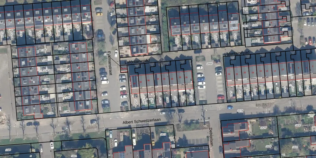 Gebruik de zoekbalk of klik op een perceel voor informatie over de adressen binnen dit perceel.