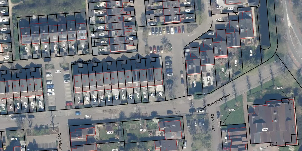 Gebruik de zoekbalk of klik op een perceel voor informatie over de adressen binnen dit perceel.
