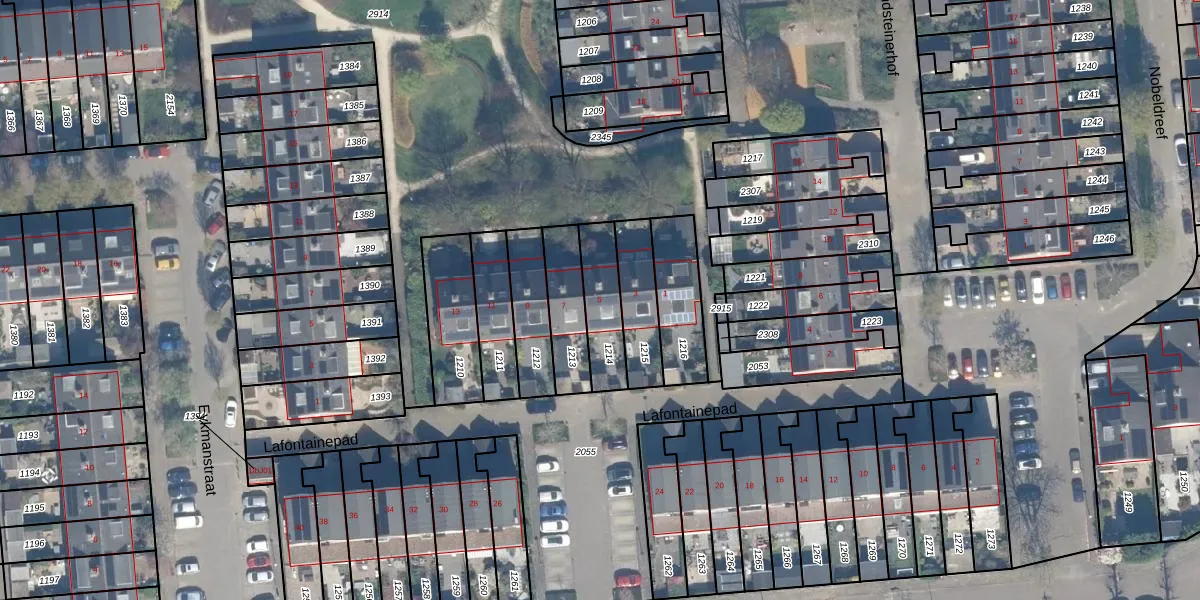 Het perceel waarop Lafontainepad 5 staat heeft een oppervlakte van 177 m². Dit is een middelgroot perceel. De perceeloppervlakte wordt geregistreerd door het Kadaster. Gedetailleerde informatie over de maten van dit perceel kunt u vinden in het rapport Kadastrale kaart met maatvoering van Lafontainepad 5.