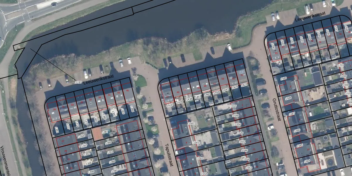 Gebruik de zoekbalk of klik op een perceel voor informatie over de adressen binnen dit perceel.