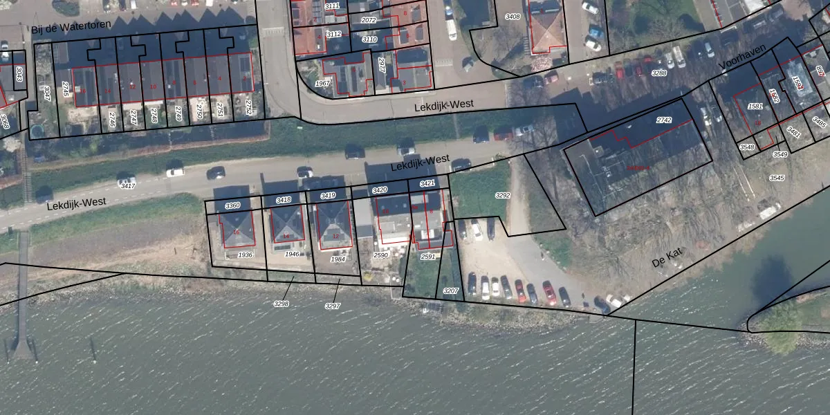 Lekdijk-West 8-a is gelegen op kadastraal perceel SHV00C2591. Deze kadastrale aanduiding is uniek en wordt gebruikt door het Kadaster om eigendomsrechten en andere zakelijke rechten vast te leggen. Het perceel maakt onderdeel uit van de kadastrale gemeente Schoonhoven.