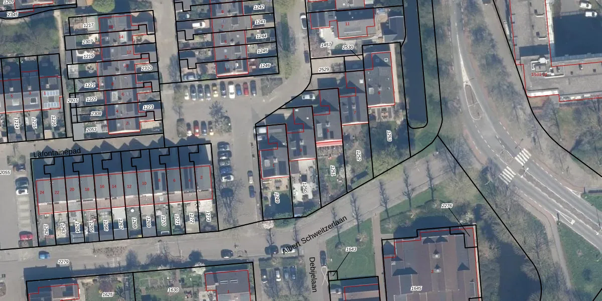 Gebruik de zoekbalk of klik op een perceel voor informatie over de adressen binnen dit perceel.