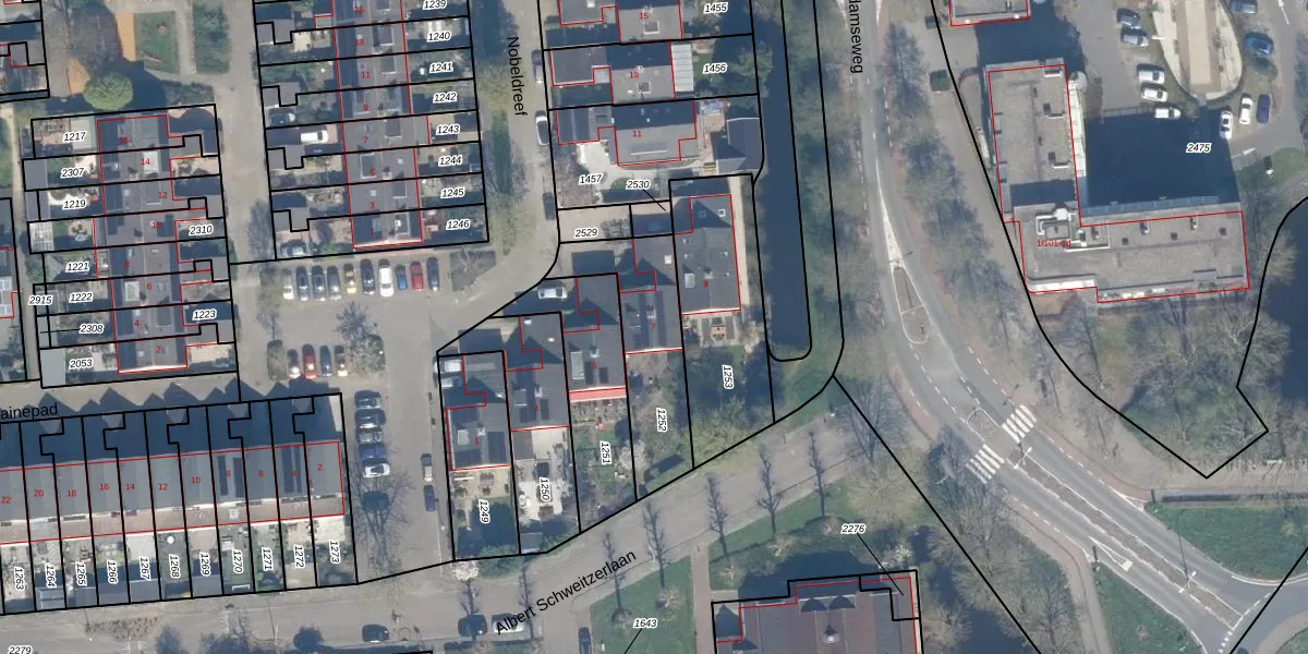 Het perceel waarop Nobeldreef 7 staat heeft een oppervlakte van 396 m². Dit is een groot perceel. De perceeloppervlakte wordt geregistreerd door het Kadaster. Gedetailleerde informatie over de maten van dit perceel kunt u vinden in het rapport Kadastrale kaart met maatvoering van Nobeldreef 7.