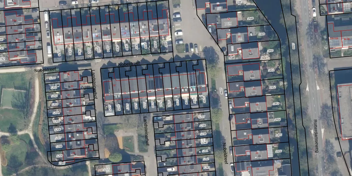 Gebruik de zoekbalk of klik op een perceel voor informatie over de adressen binnen dit perceel.
