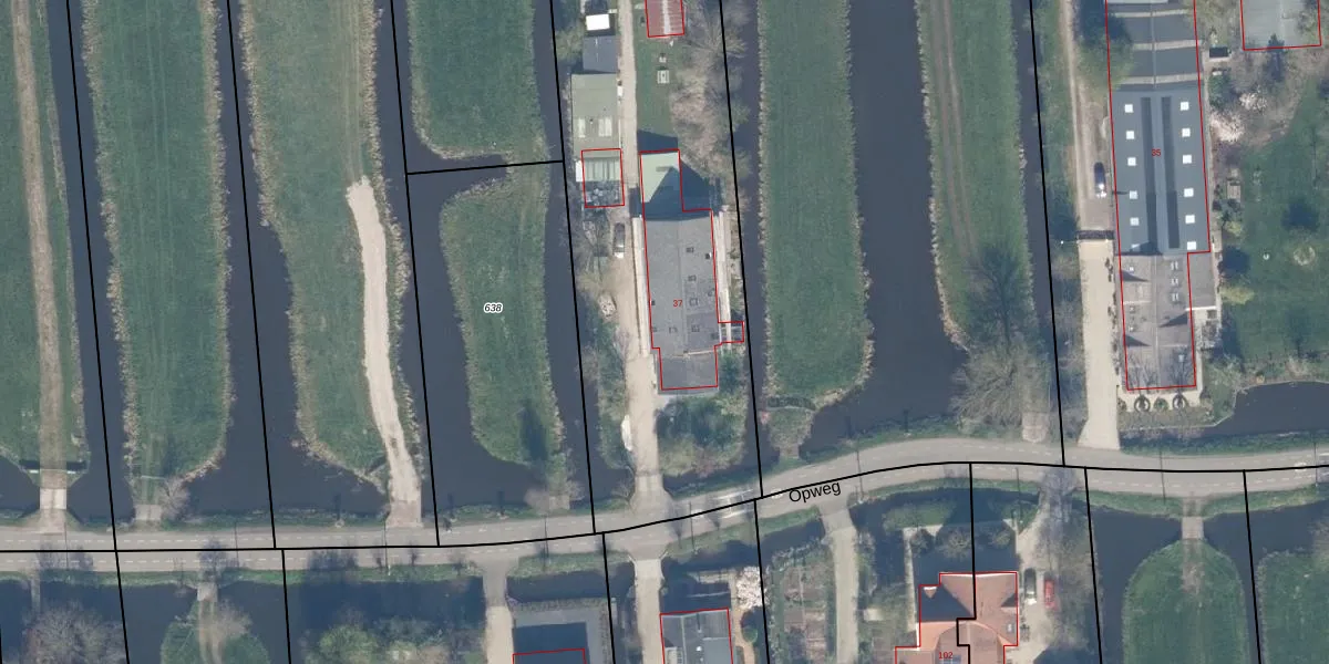 Het perceel waarop Opweg 37-a staat heeft een oppervlakte van 3762 m². Dit is een zeer groot perceel. De perceeloppervlakte wordt geregistreerd door het Kadaster. Gedetailleerde informatie over de maten van dit perceel kunt u vinden in het rapport Kadastrale kaart met maatvoering van Opweg 37-a.