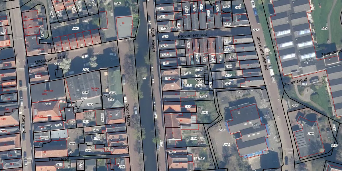 Het perceel waarop Oude Haven 25 staat heeft een oppervlakte van 155 m². Dit is een middelgroot perceel. De perceeloppervlakte wordt geregistreerd door het Kadaster. Gedetailleerde informatie over de maten van dit perceel kunt u vinden in het rapport Kadastrale kaart met maatvoering van Oude Haven 25.
