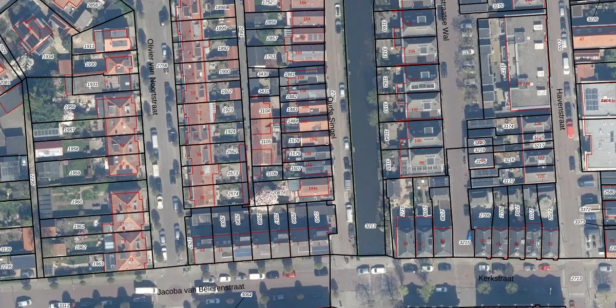 Het perceel waarop Oude Singel 148 staat heeft een oppervlakte van 72 m². Dit is een klein perceel. De perceeloppervlakte wordt geregistreerd door het Kadaster. Gedetailleerde informatie over de maten van dit perceel kunt u vinden in het rapport Kadastrale kaart met maatvoering van Oude Singel 148.