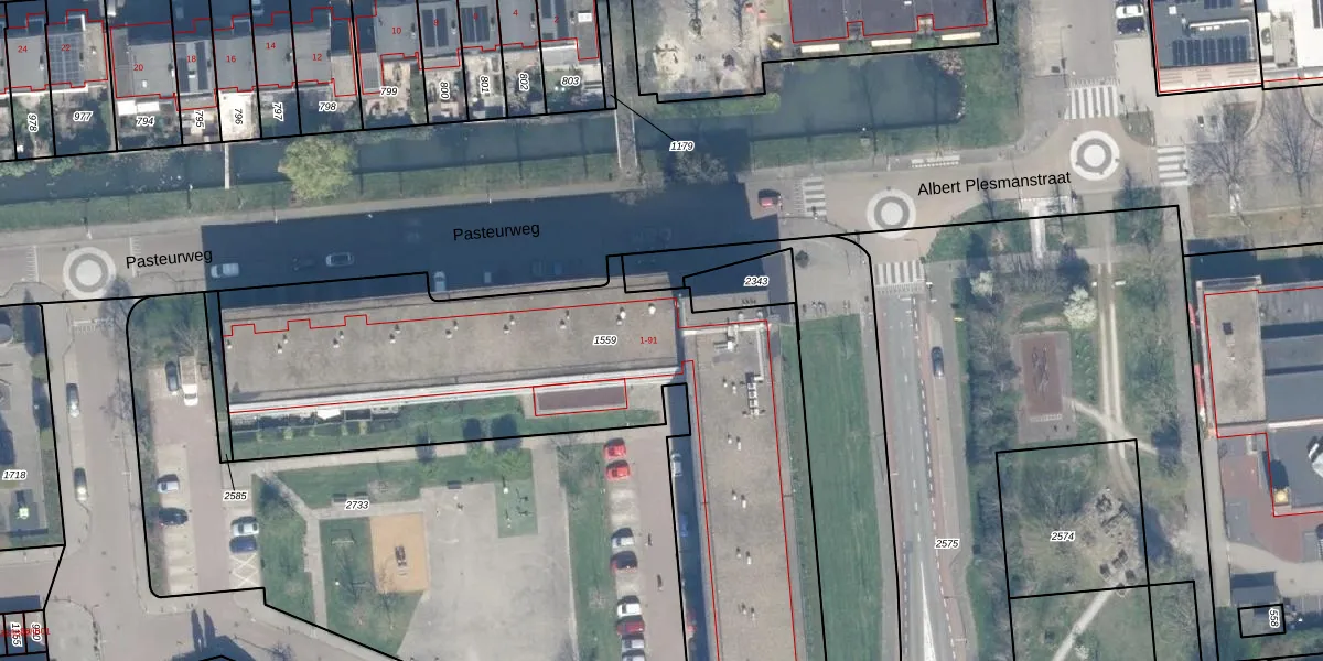 Het perceel waarop Pasteurweg 13 staat heeft een oppervlakte van 2942 m². Dit is een zeer groot perceel. De perceeloppervlakte wordt geregistreerd door het Kadaster. Gedetailleerde informatie over de maten van dit perceel kunt u vinden in het rapport Kadastrale kaart met maatvoering van Pasteurweg 13.