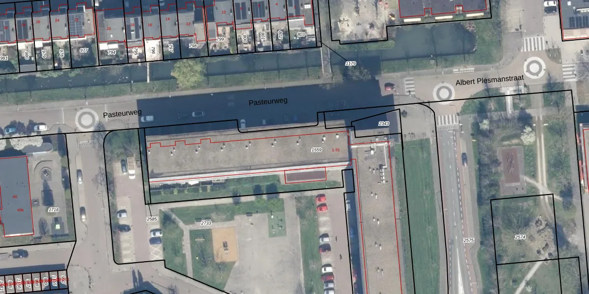 Het perceel waarop Pasteurweg 17 staat heeft een oppervlakte van 2942 m². Dit is een zeer groot perceel. De perceeloppervlakte wordt geregistreerd door het Kadaster. Gedetailleerde informatie over de maten van dit perceel kunt u vinden in het rapport Kadastrale kaart met maatvoering van Pasteurweg 17.