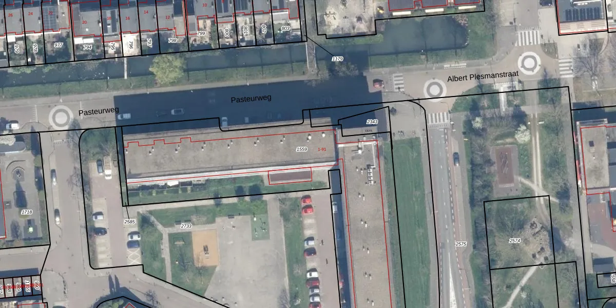 Het perceel waarop Pasteurweg 25 staat heeft een oppervlakte van 2942 m². Dit is een zeer groot perceel. De perceeloppervlakte wordt geregistreerd door het Kadaster. Gedetailleerde informatie over de maten van dit perceel kunt u vinden in het rapport Kadastrale kaart met maatvoering van Pasteurweg 25.