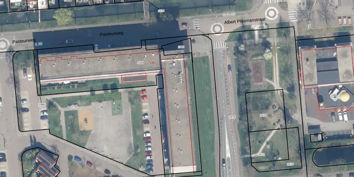 Het perceel waarop Pasteurweg 49 staat heeft een oppervlakte van 2942 m². Dit is een zeer groot perceel. De perceeloppervlakte wordt geregistreerd door het Kadaster. Gedetailleerde informatie over de maten van dit perceel kunt u vinden in het rapport Kadastrale kaart met maatvoering van Pasteurweg 49.