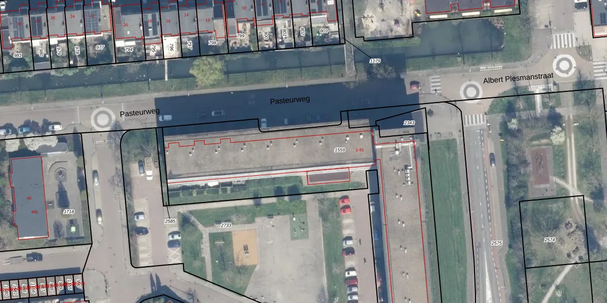 Het perceel waarop Pasteurweg 5 staat heeft een oppervlakte van 2942 m². Dit is een zeer groot perceel. De perceeloppervlakte wordt geregistreerd door het Kadaster. Gedetailleerde informatie over de maten van dit perceel kunt u vinden in het rapport Kadastrale kaart met maatvoering van Pasteurweg 5.