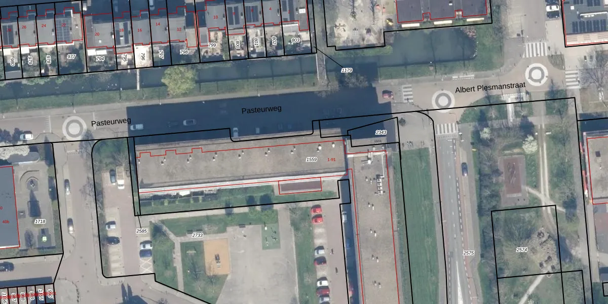 Het perceel waarop Pasteurweg 51 staat heeft een oppervlakte van 2942 m². Dit is een zeer groot perceel. De perceeloppervlakte wordt geregistreerd door het Kadaster. Gedetailleerde informatie over de maten van dit perceel kunt u vinden in het rapport Kadastrale kaart met maatvoering van Pasteurweg 51.
