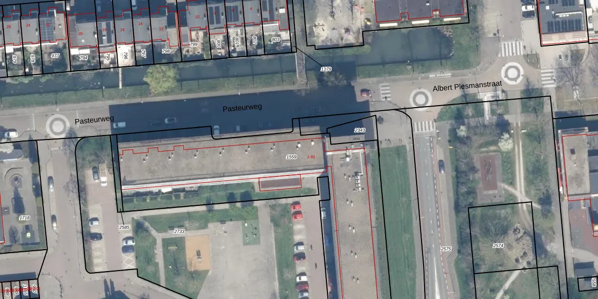 Het perceel waarop Pasteurweg 62 staat heeft een oppervlakte van 2942 m². Dit is een zeer groot perceel. De perceeloppervlakte wordt geregistreerd door het Kadaster. Gedetailleerde informatie over de maten van dit perceel kunt u vinden in het rapport Kadastrale kaart met maatvoering van Pasteurweg 62.