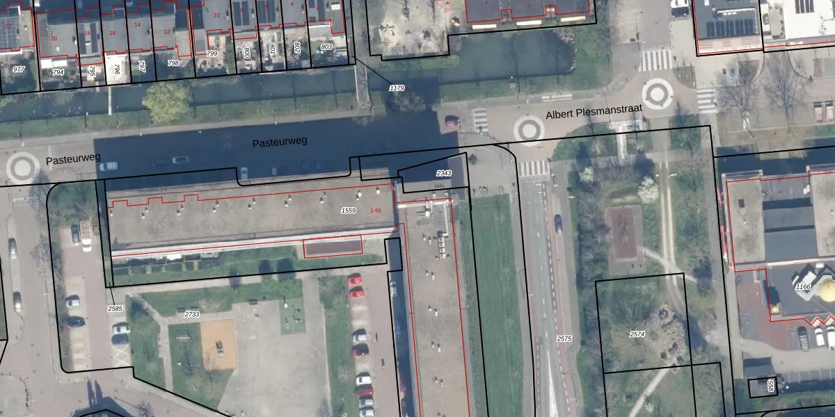Het perceel waarop Pasteurweg 83 staat heeft een oppervlakte van 2942 m². Dit is een zeer groot perceel. De perceeloppervlakte wordt geregistreerd door het Kadaster. Gedetailleerde informatie over de maten van dit perceel kunt u vinden in het rapport Kadastrale kaart met maatvoering van Pasteurweg 83.