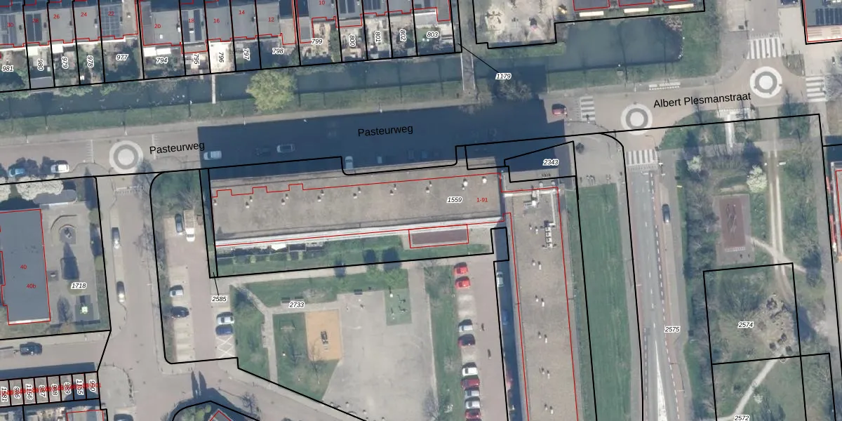 Het perceel waarop Pasteurweg 88 staat heeft een oppervlakte van 2942 m². Dit is een zeer groot perceel. De perceeloppervlakte wordt geregistreerd door het Kadaster. Gedetailleerde informatie over de maten van dit perceel kunt u vinden in het rapport Kadastrale kaart met maatvoering van Pasteurweg 88.