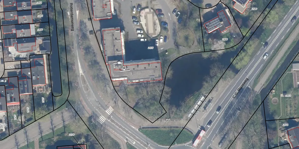 Rotterdamseweg 1-423 is gelegen op kadastraal perceel SHV00C2475. Deze kadastrale aanduiding is uniek en wordt gebruikt door het Kadaster om eigendomsrechten en andere zakelijke rechten vast te leggen. Het perceel maakt onderdeel uit van de kadastrale gemeente Schoonhoven.