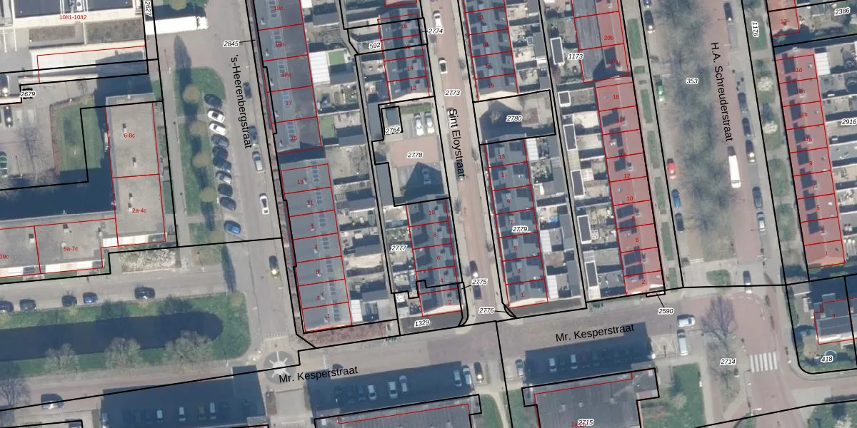 Sint Eloystraat 10 is gelegen op kadastraal perceel SHV00A2777. Deze kadastrale aanduiding is uniek en wordt gebruikt door het Kadaster om eigendomsrechten en andere zakelijke rechten vast te leggen. Het perceel maakt onderdeel uit van de kadastrale gemeente Schoonhoven.