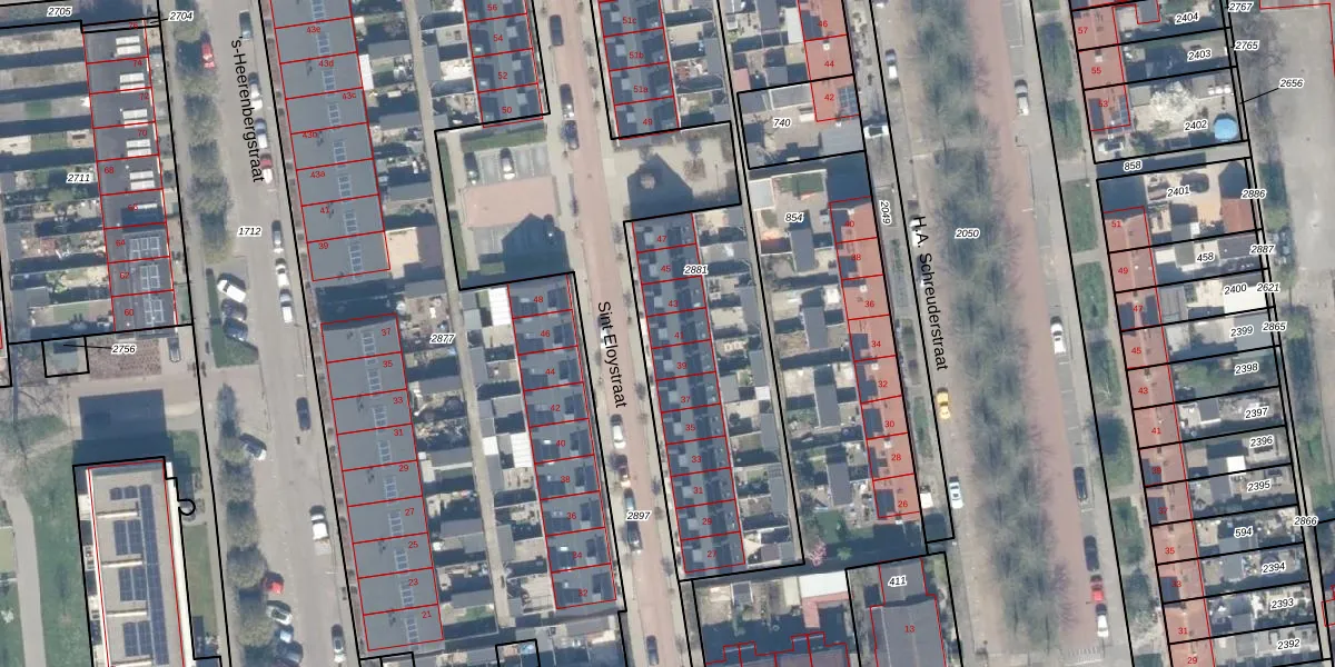 Sint Eloystraat 41 is gelegen op kadastraal perceel SHV00A2881. Deze kadastrale aanduiding is uniek en wordt gebruikt door het Kadaster om eigendomsrechten en andere zakelijke rechten vast te leggen. Het perceel maakt onderdeel uit van de kadastrale gemeente Schoonhoven.