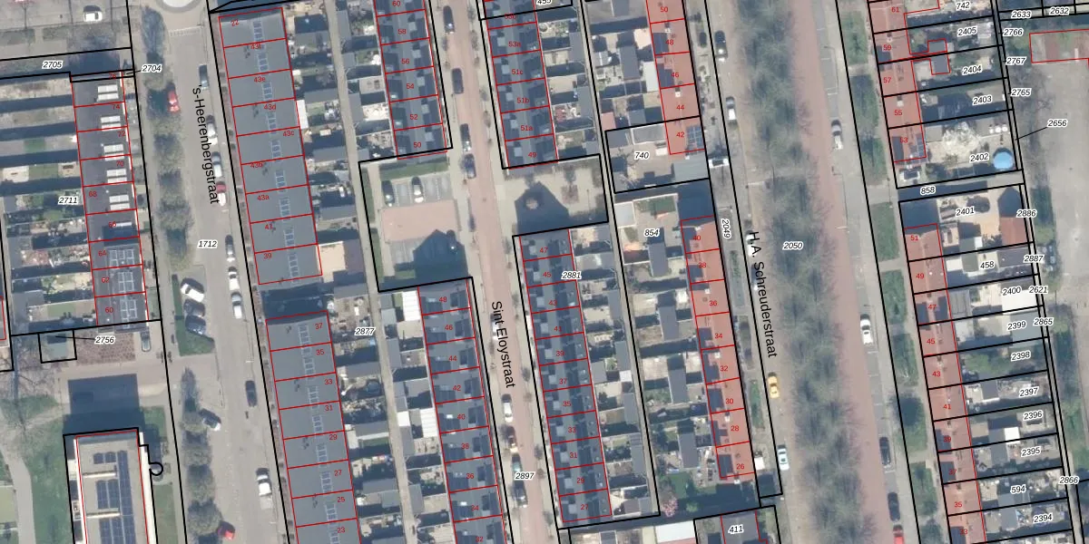 Sint Eloystraat 45 is gelegen op kadastraal perceel SHV00A2881. Deze kadastrale aanduiding is uniek en wordt gebruikt door het Kadaster om eigendomsrechten en andere zakelijke rechten vast te leggen. Het perceel maakt onderdeel uit van de kadastrale gemeente Schoonhoven.