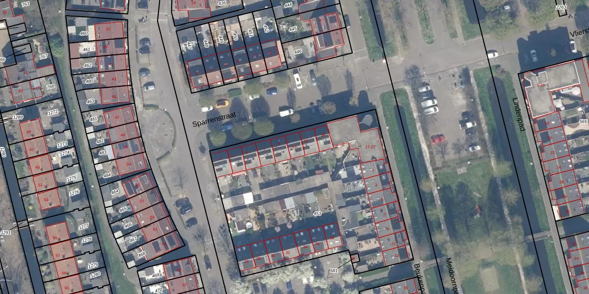 Sparrenstraat 11 is gelegen op kadastraal perceel SHV00E453. Deze kadastrale aanduiding is uniek en wordt gebruikt door het Kadaster om eigendomsrechten en andere zakelijke rechten vast te leggen. Het perceel maakt onderdeel uit van de kadastrale gemeente Schoonhoven.