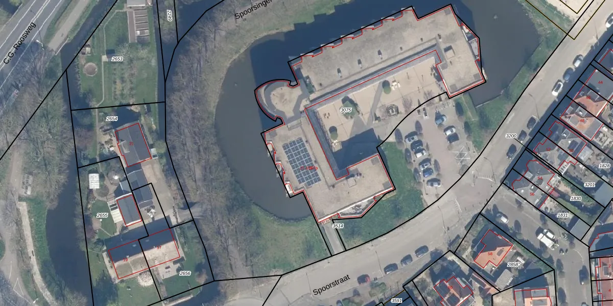 Het perceel waarop Spoorstraat 45 staat heeft een oppervlakte van 3040 m². Dit is een zeer groot perceel. De perceeloppervlakte wordt geregistreerd door het Kadaster. Gedetailleerde informatie over de maten van dit perceel kunt u vinden in het rapport Kadastrale kaart met maatvoering van Spoorstraat 45.