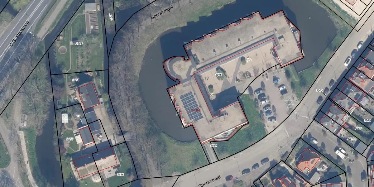 Het perceel waarop Spoorstraat 65 staat heeft een oppervlakte van 3040 m². Dit is een zeer groot perceel. De perceeloppervlakte wordt geregistreerd door het Kadaster. Gedetailleerde informatie over de maten van dit perceel kunt u vinden in het rapport Kadastrale kaart met maatvoering van Spoorstraat 65.