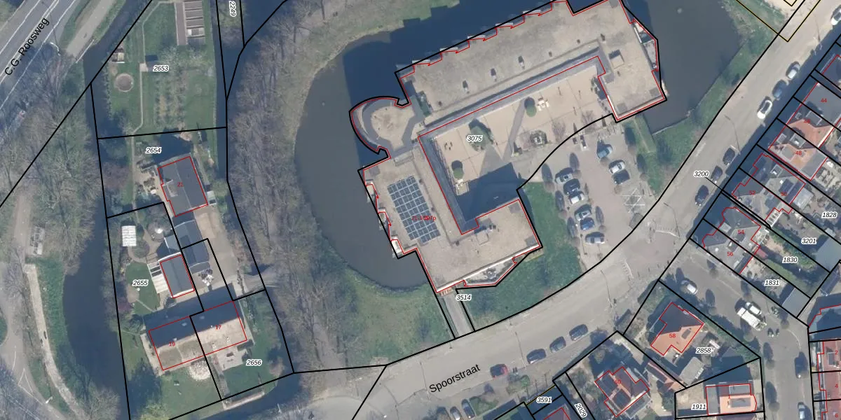 Het perceel waarop Spoorstraat 79 staat heeft een oppervlakte van 3040 m². Dit is een zeer groot perceel. De perceeloppervlakte wordt geregistreerd door het Kadaster. Gedetailleerde informatie over de maten van dit perceel kunt u vinden in het rapport Kadastrale kaart met maatvoering van Spoorstraat 79.